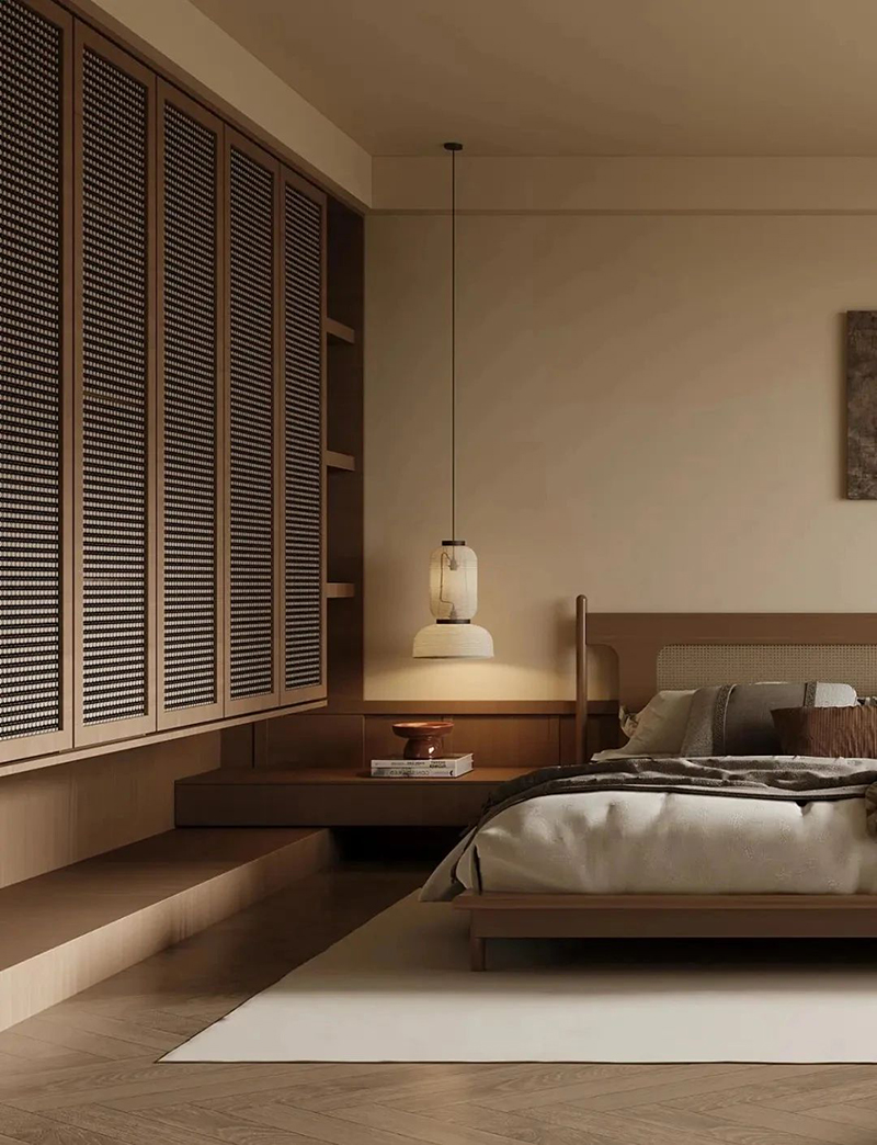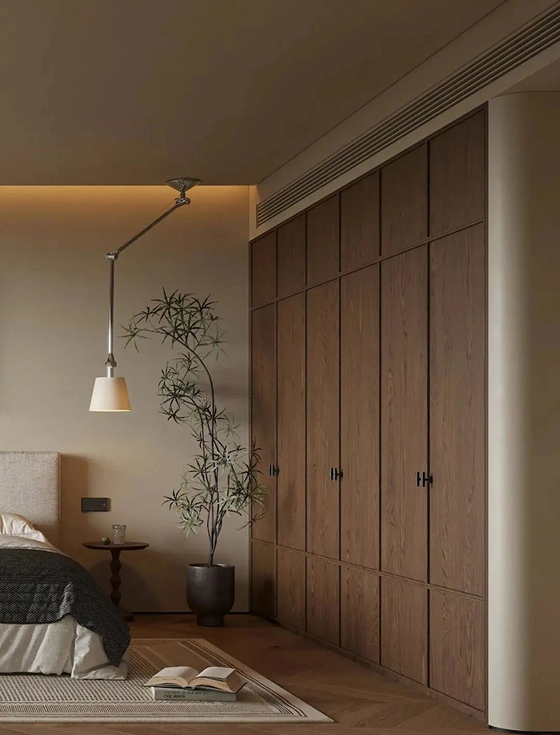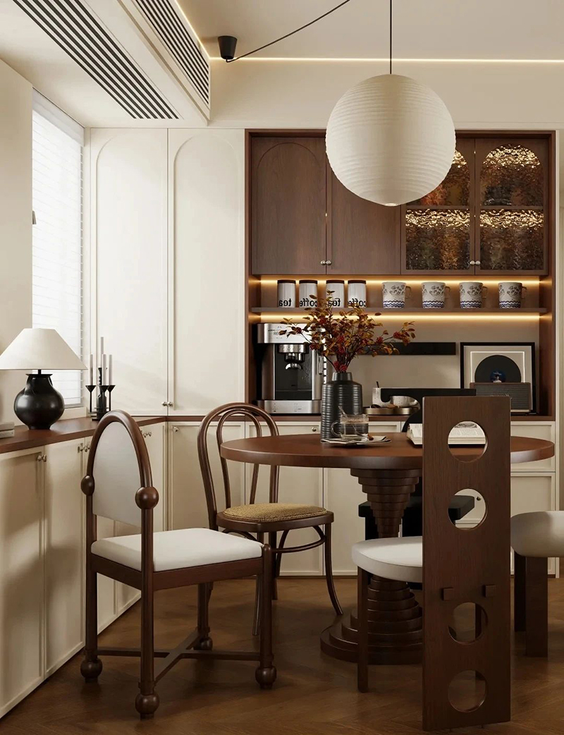 3.中古风:穿越时光的美学复兴胡桃木色是中古风的核心元素。以复古元素为基底,打造历久弥新的空间质感。以复古的情怀、极简的理念和经典的形式,绽放夺目的光彩,在不经意间透露出摩登复古的美感。