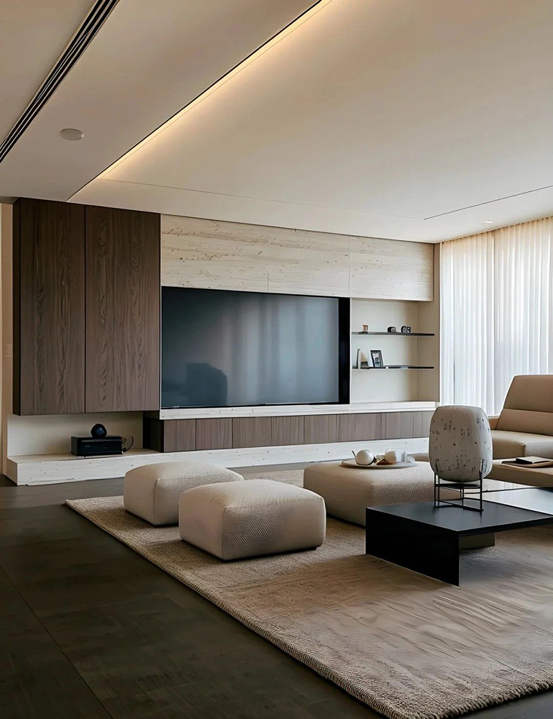 装修建议选择哑光漆面工艺,保留木纹呼吸感,搭配灰白色墙面与隐藏式灯带,营造通透氛围。
